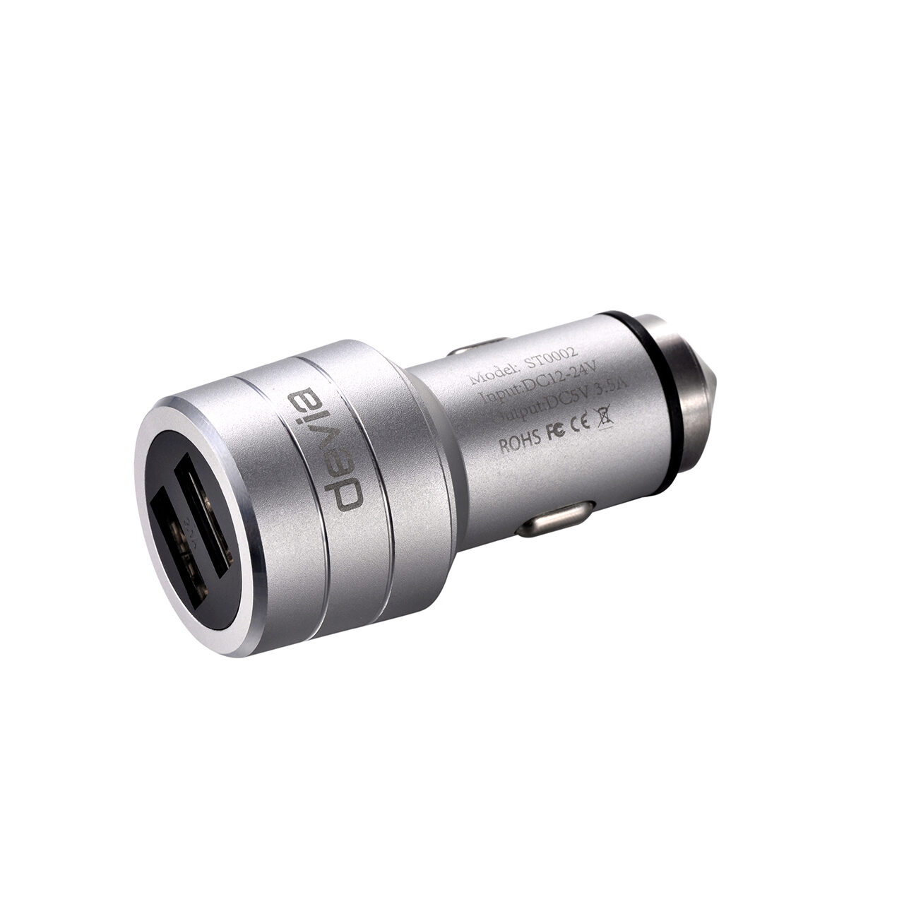 Incarcatorul auto Battle, Dual USB True Silver Devia