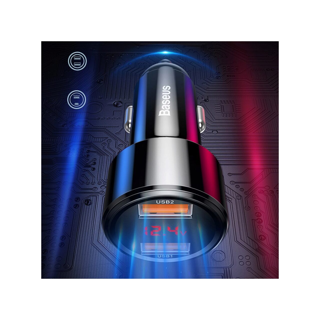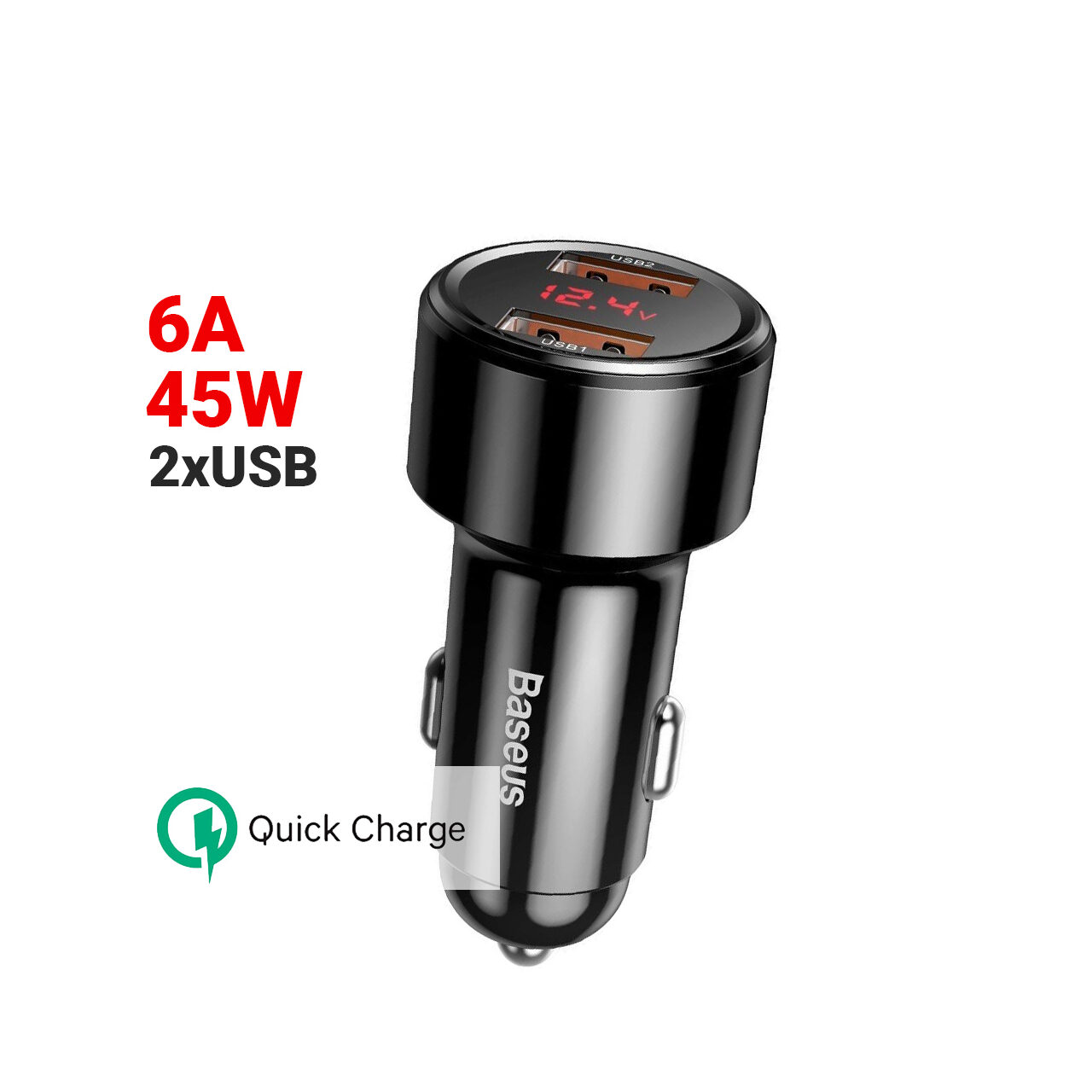Baseus Incarcator Auto Dual Magic Series Quick Charger Black (digital display, output 6A, 45W)