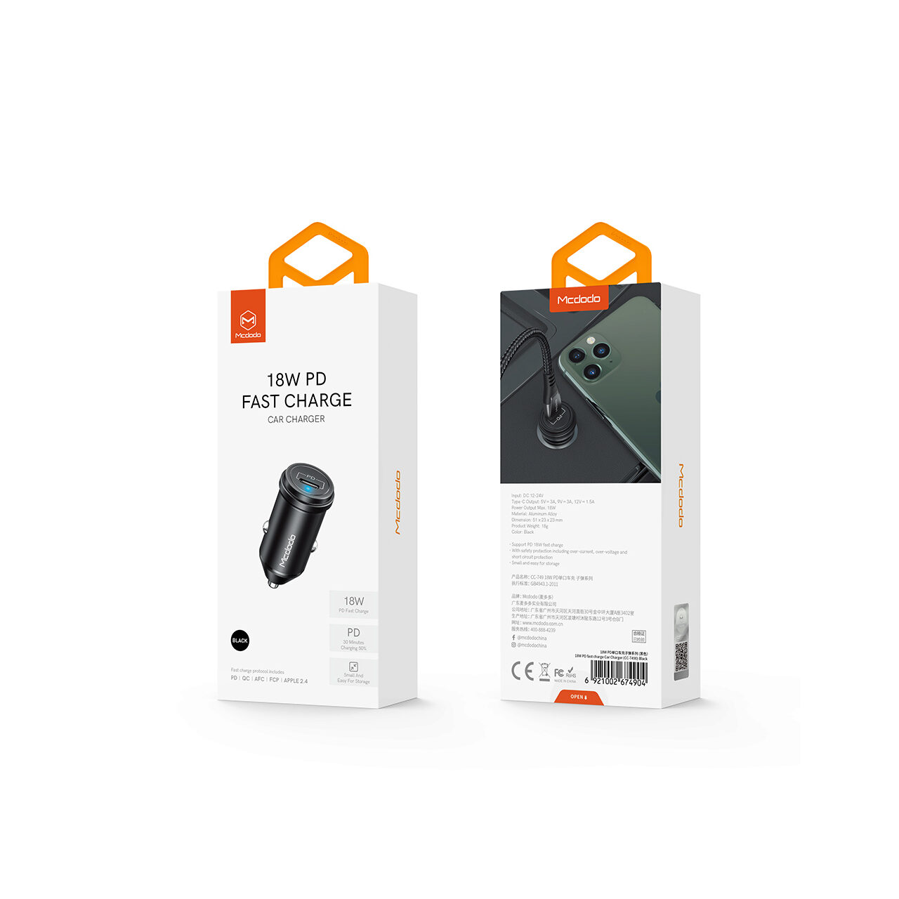 Mcdodo Incarcator Auto Bullet Series Fast Charger Type-C 18W PD Black