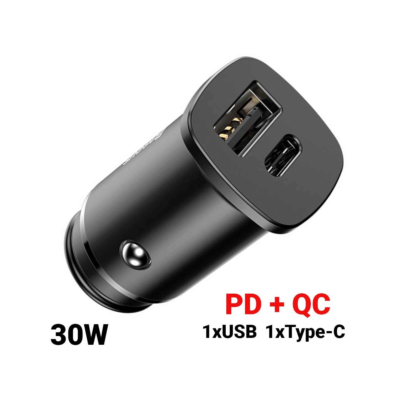 Baseus Incarcator Auto Metal Dual Port 30W USB si Type-C Black (5A max, PD3.0, QC4.0+)