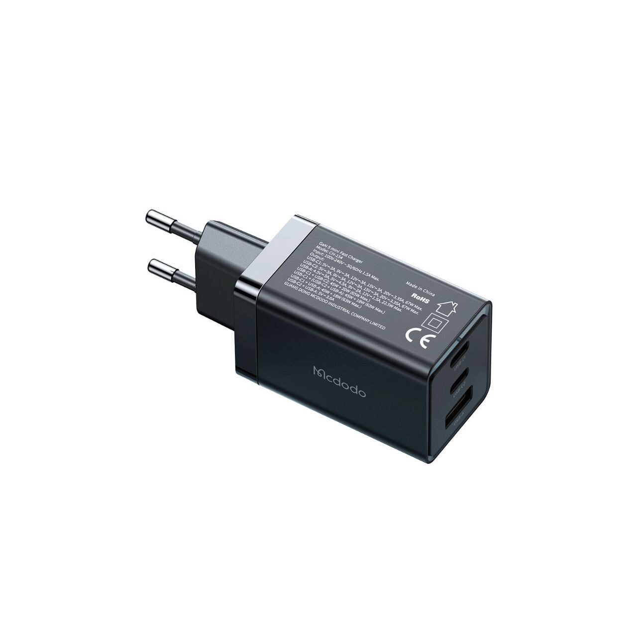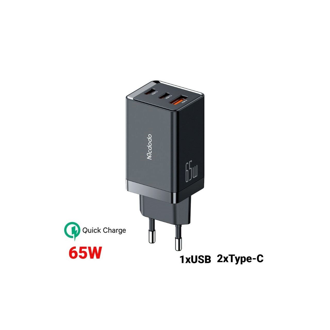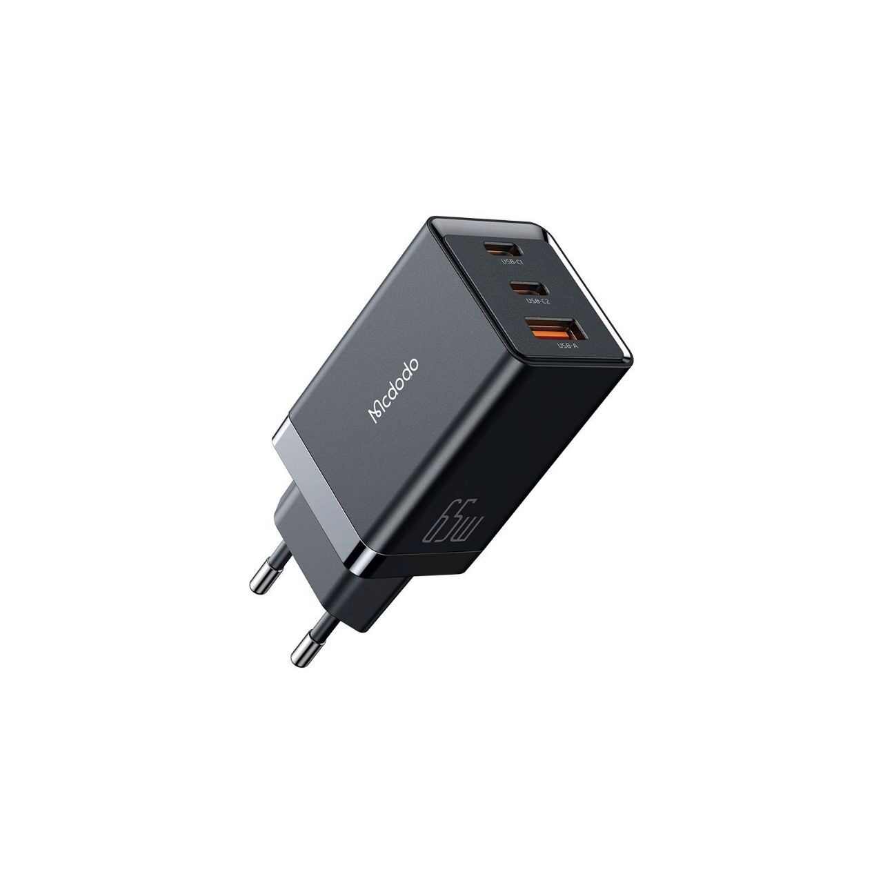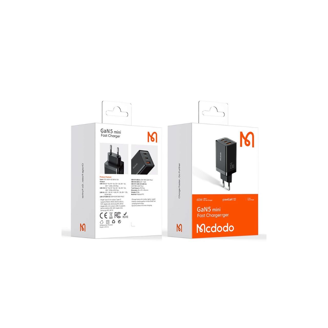 Mcdodo Incarcator Priza GaN 5 Mini Fast Charge 65W Dual Type-C+USB+ Cablu Type-c la Type-c, Plug EU Black