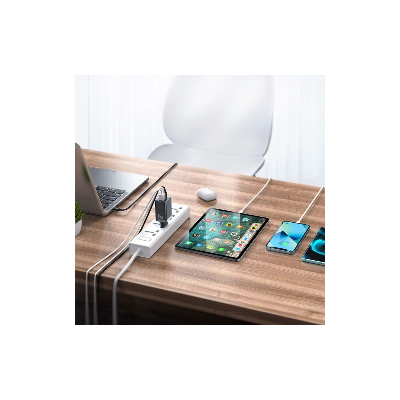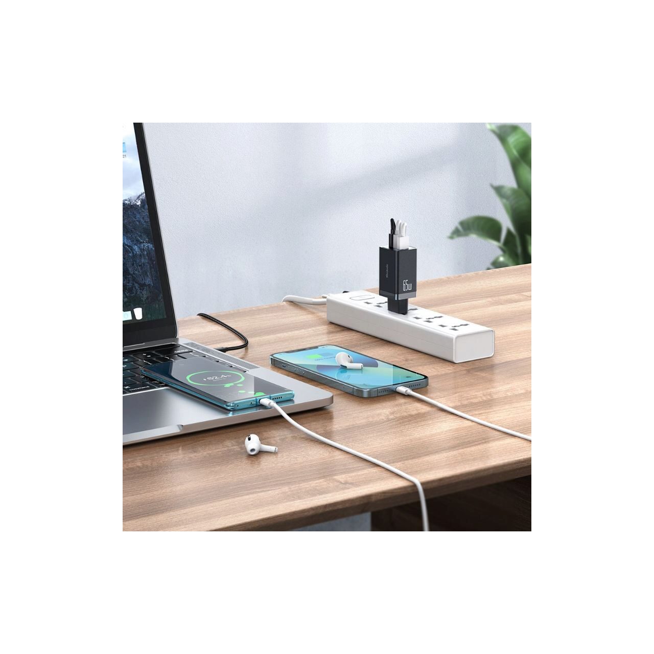 Incarcatorul de Priza GaN 5 Mini Fast Charge 65W Dual Type-C+USB cu Cablu Type-c de la Mcdodo este un incarcator mai stabil, mai eficient si mai sigur, ambele porturi USB-C actualizate accepta iesire de 65 W pentru incarcare rapida a laptopului.