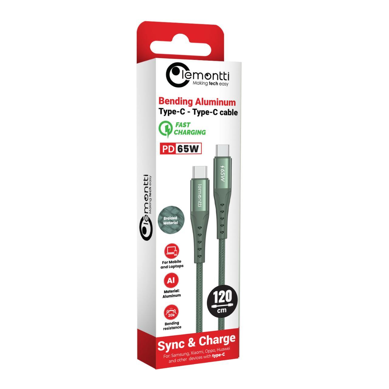 Lemontti Cablu Bending Aluminum Fast Charge Type-C la Type-C, PD 65W, 1.2m, Verde