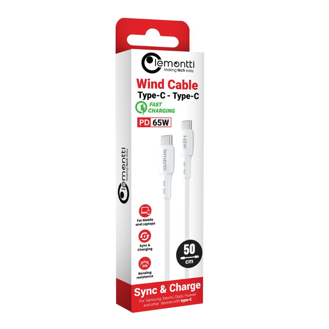 Lemontti Cablu Wind Fast Charge Type-C la Type-C, PD 65W, 0.5m, Alb