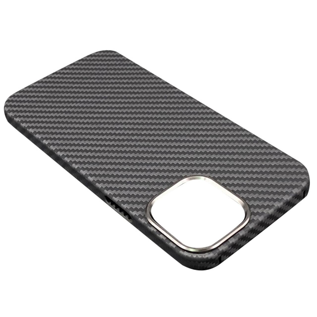 Husa Fibra Aramida Kevlar cu Magsafe iPhone 15 Pro Max de la Lemontti, husa de protectie este realizata din material placut la atingere avand o structura 3D care scoate in evidenta aspectul de fibra de carbon.