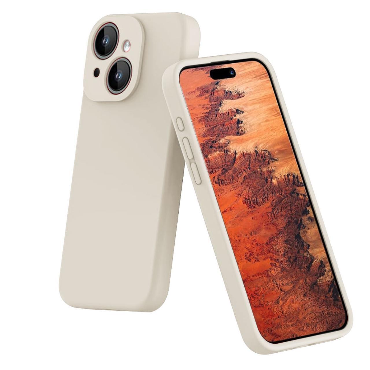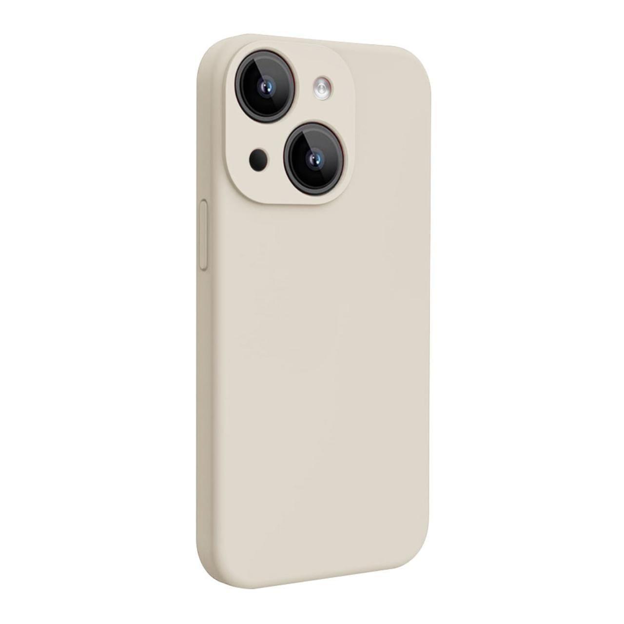 Lemontti Husa Liquid Silicon MagCharge iPhone 15 Bej (protectie 360°, material fin, captusit cu microfibra)