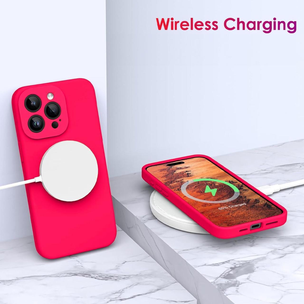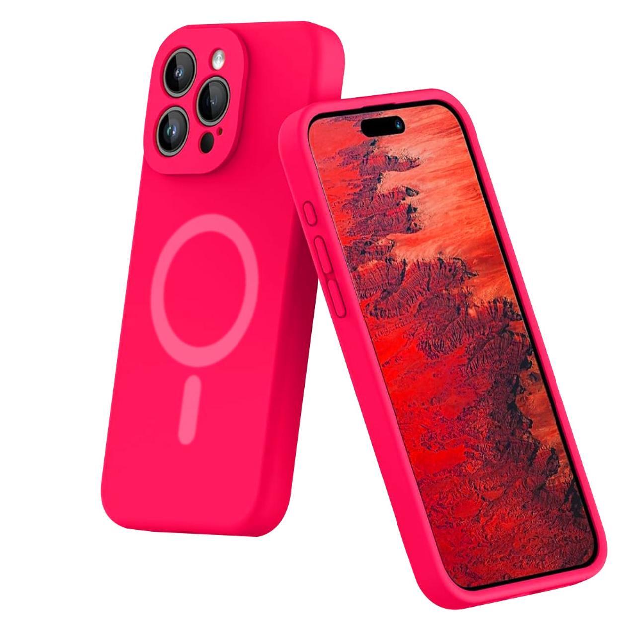 Lemontti Husa Liquid Silicon MagCharge iPhone 15 Pro Roz Neon (protectie 360°, material fin, captusit cu microfibra)