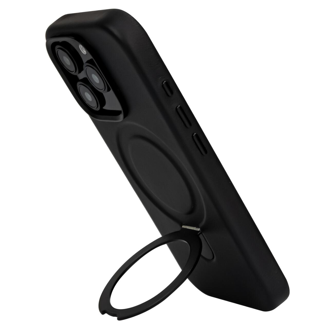 Lemontti Husa Piele MagSafe cu inel stand iPhone 15 Pro Negru