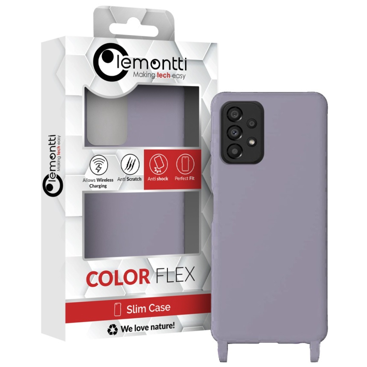 Lemontti Husa Silicon cu Snur Samsung Galaxy A33 5G Mov (protectie 360°, material fin, captusit cu microfibra)