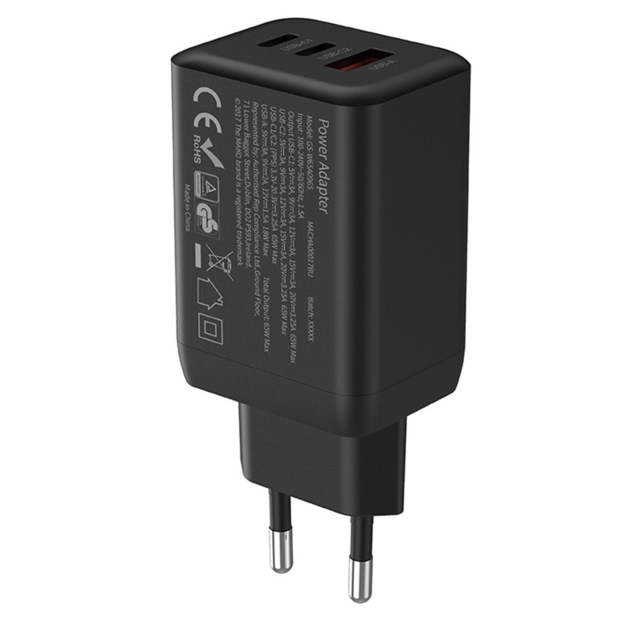 Mako Incarcator Retea Quick Charge 65W GaN2, 2x Type-C, 1x USB-A, EU, Black