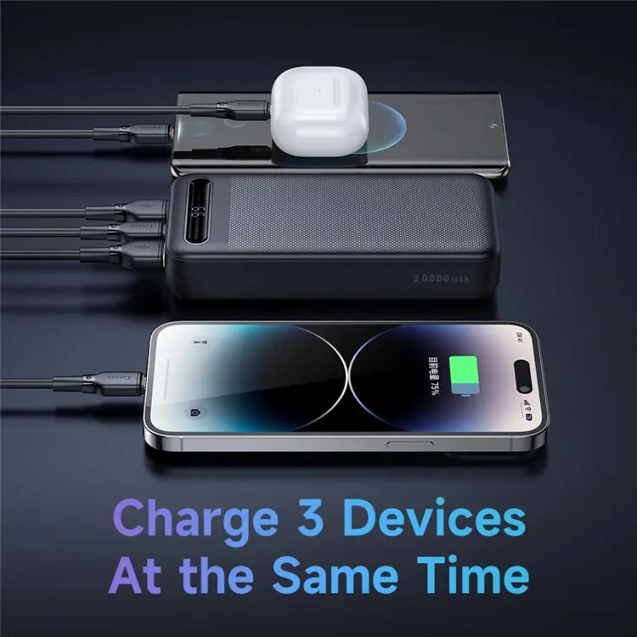 Acumulatorul Extern Star Series Digital Display 20000mAh de la Mcdodo, este un powerbank elegant si bine finisat, cu o capacitate de 20000mAh prevazut cu 2 porturi USB-A si 1 port USB-C ce poate incarca simultan 3 dispozitive.