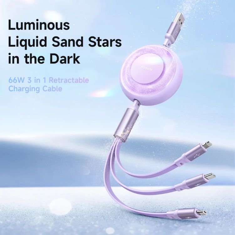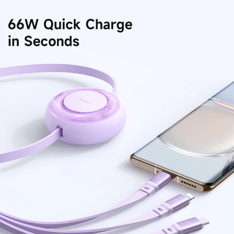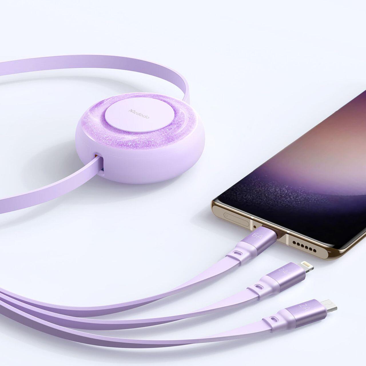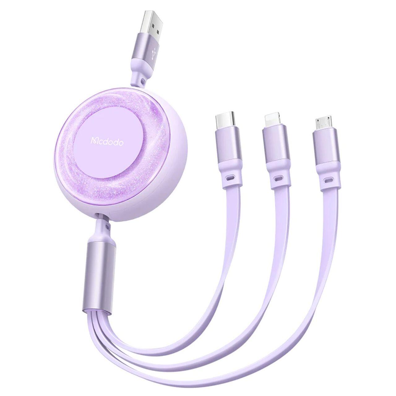 Mcdodo Cablu 3 in 1 USB la Lightning, MicroUSB si Type-C Super Fast Charging, 66W, 1.2m, Mov