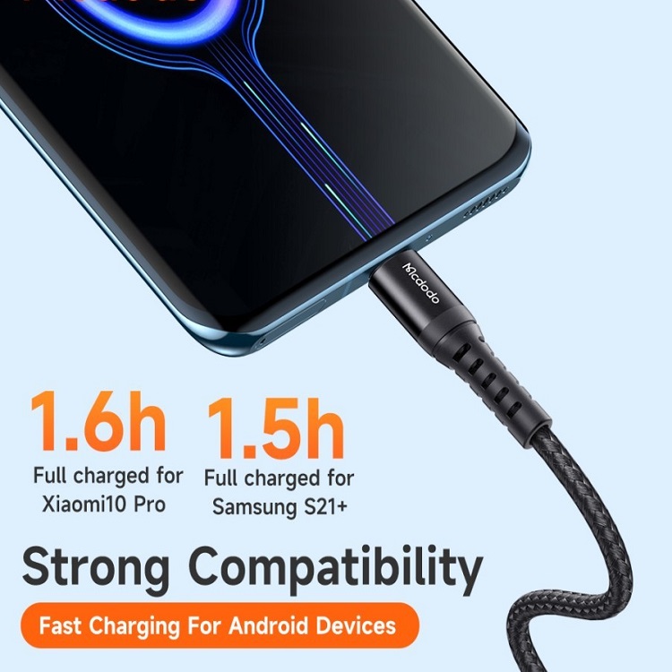 Cablul Mcdodo garanteaza fiabilitatea datorita miezului sau de cupru ingrosat care asigura o conductivitate electrica ridicata, astfel incat incarcarea are loc intr-un timp scurt. In plus, capetele cablului sunt extrem de flexibile iar intreaga lungime a cablului este acoperita cu o impletitura din nailon, astfel incat nu se incurca si este rezistent la deteriorare.