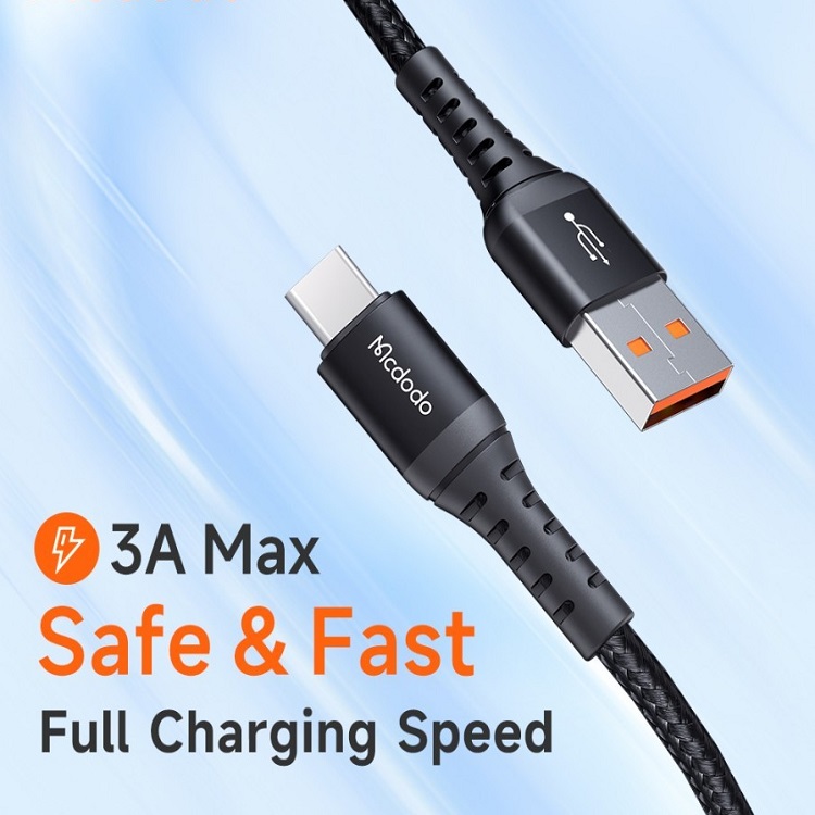 Cablu USB la Type-C Fast Charging Negru de la Mcdodo, accepta curent 3A pentru o incarcare rapida si sigura. Se remarca prin designul robust si rezistenta la uzura de zi cu zi.
