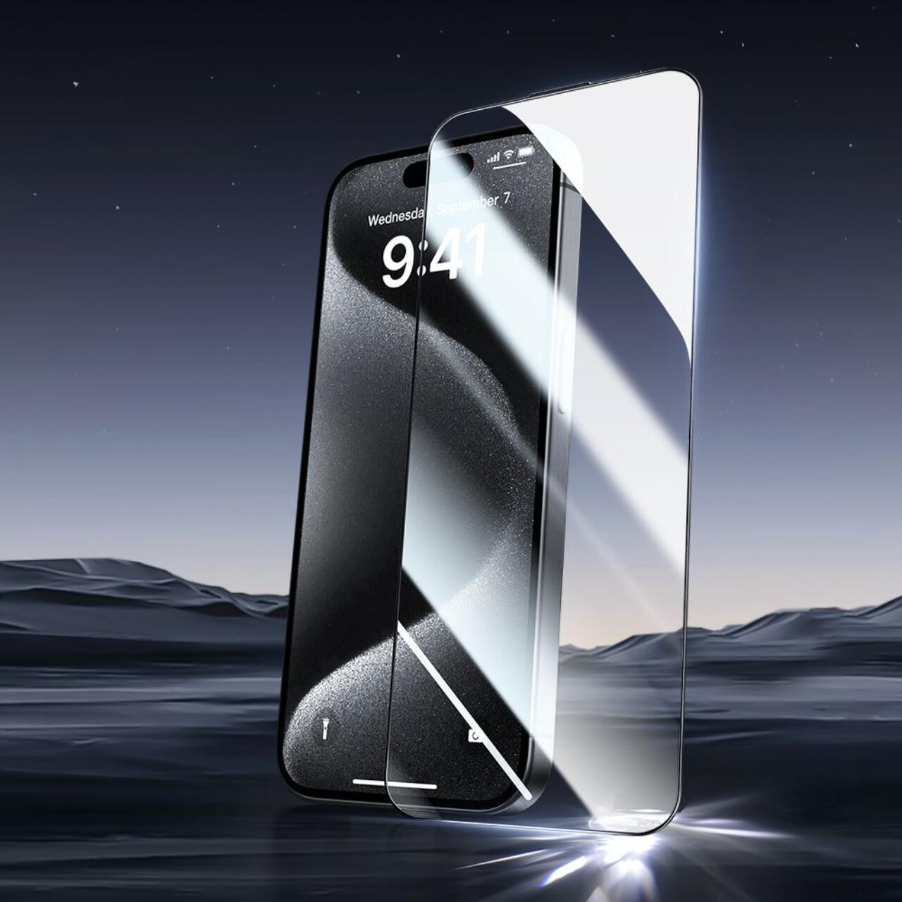 Folia Sticla iPhone 16 Pro Max cu Kit de instalare de la Mcdodo, realizata din sticla securizata, protejeaza ecranul impotriva zgarieturilor si deteriorarilor minore. Sticla asigura o vizualizare clara a continutului de pe ecran, fara distorsiuni.