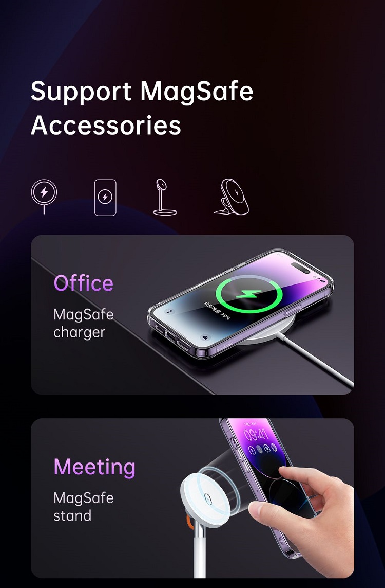 Husa MagSafe iPhone 14 Pro Max Transparent de la Mcdodo, se ataseaza usor pe telefonul dumneavoastra protejandu-l de praf si zgarieturi.
