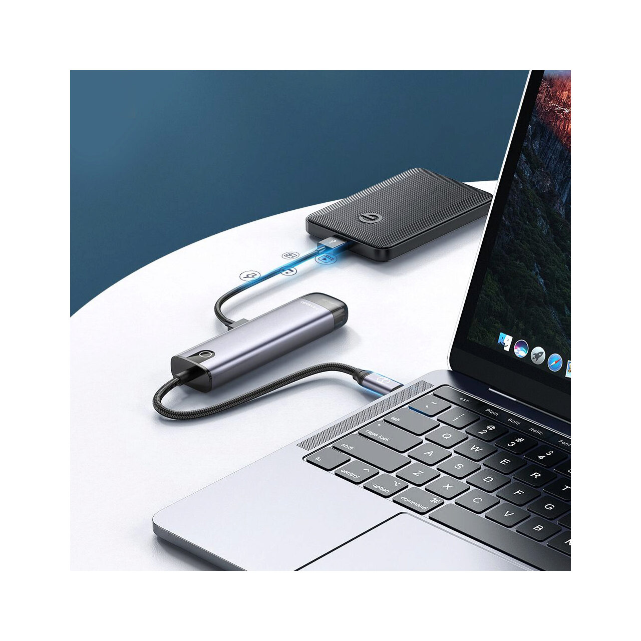 Multihub 5 in 1 Type-C Grey (USB 3.0 x 3+HDMI+PD) ofera tot ceea ce v-a placut de la multihub-ul USB Type-C 3.0 normal. Multihub-ul 5 in 1 ofera acum trei porturi USB 3.0, un port hdmi. Datorita multihubu-lui puteti incarca MacBook-ul dvs. si puteti converti cu usurinta un port USB Type-C in doua porturi USB 3.0.