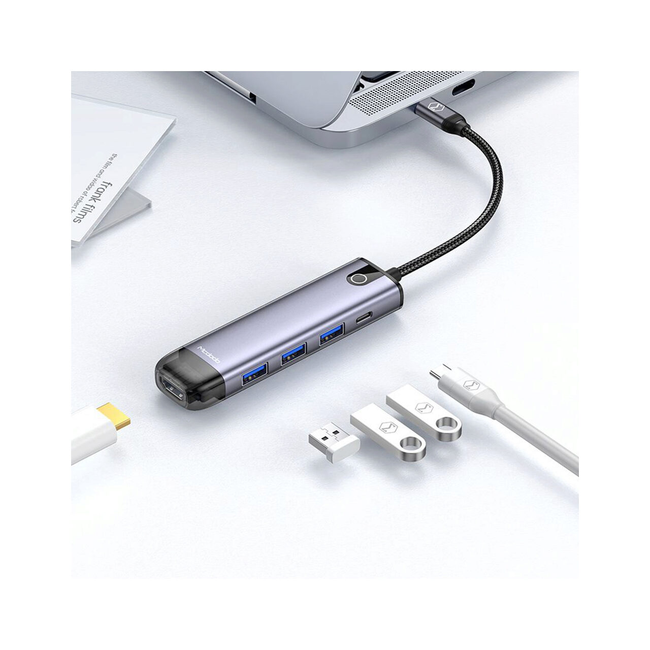 Mcdodo Multihub 5 in 1 Type-C Grey (USB 3.0 x 3+HDMI+PD)