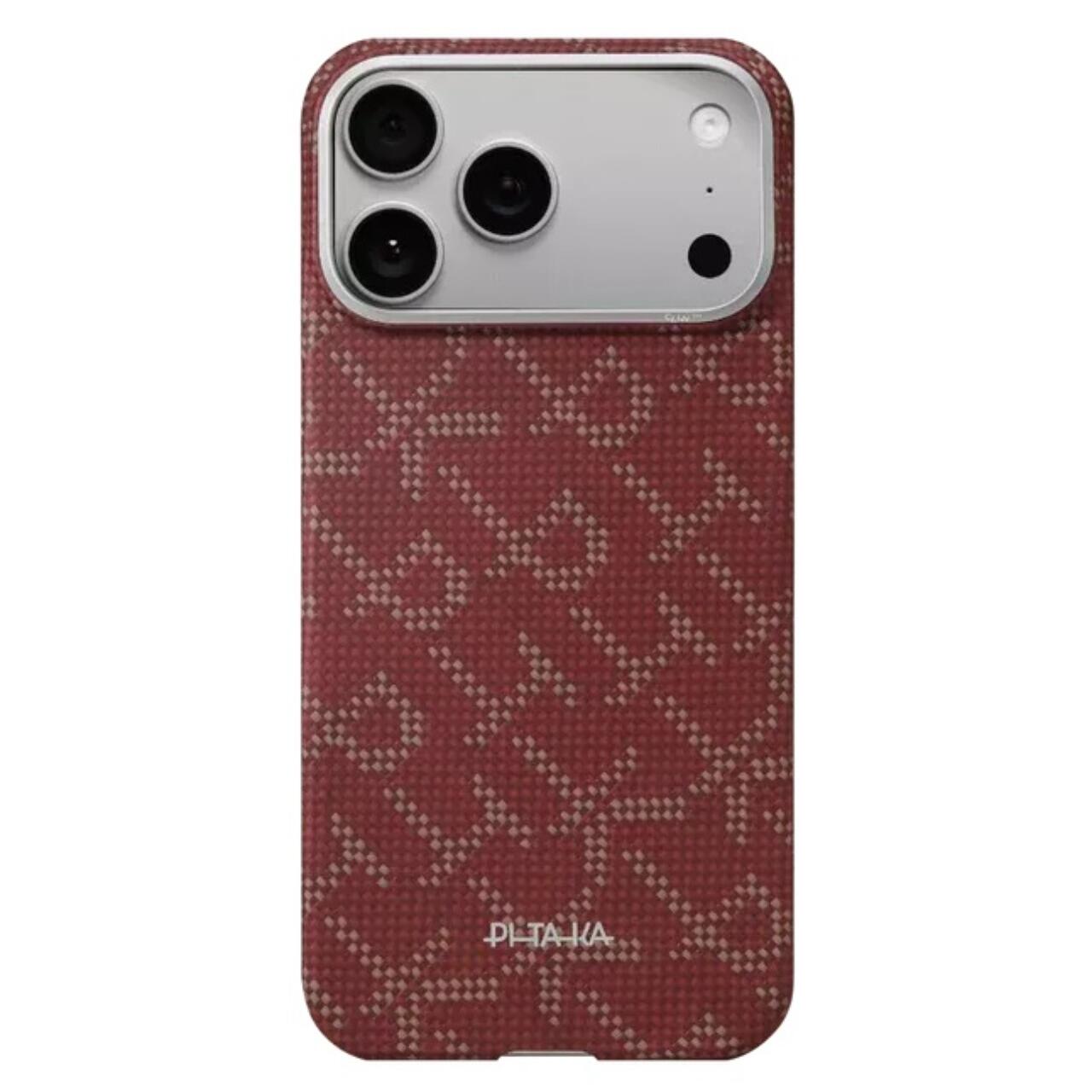 Pitaka Husa Ultra-Slim Aramida Monogram Magsafe iPhone 17 Pro Max Gold / Red