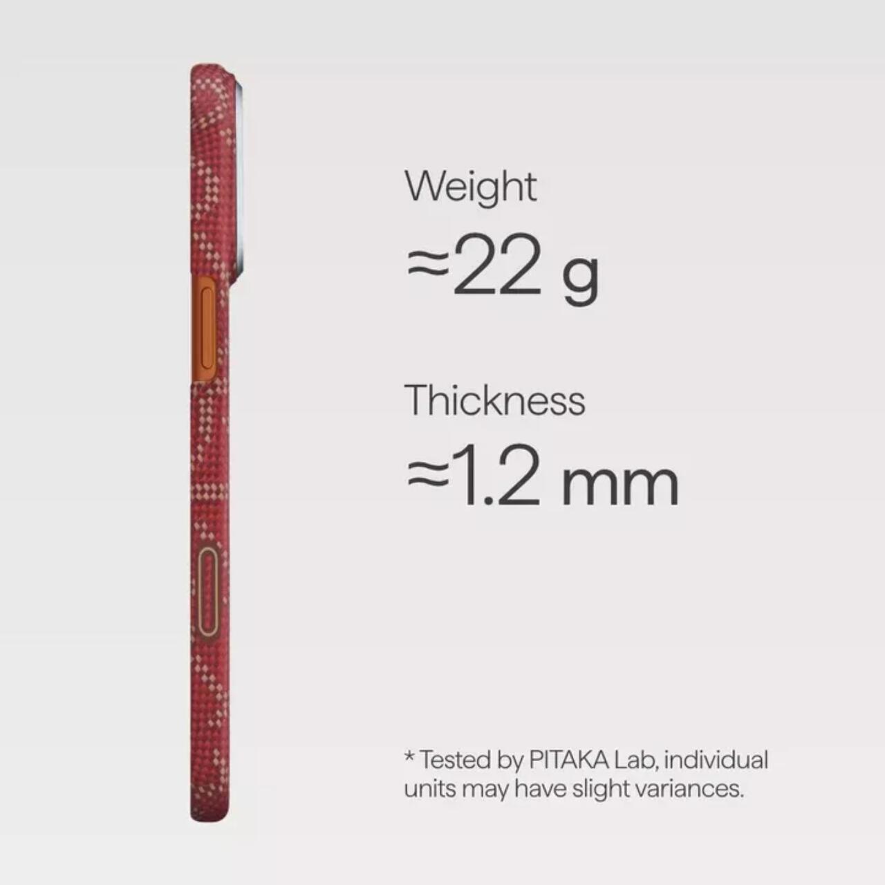 Husa Ultra-Slim Aramida Monogram Magsafe iPhone 17 Pro Max de la Pitaka, este o husa ultra-subtire, realizata din fibra de aramida de calitate aerospatiala, conceputa pentru a oferi protectie eficienta fara a compromite designul original al telefonului. Materialul utilizat este recunoscut pentru rezistenta sa ridicata la uzura, zgarieturi si decolorare, pastrand in acelasi timp o greutate extrem de redusa.