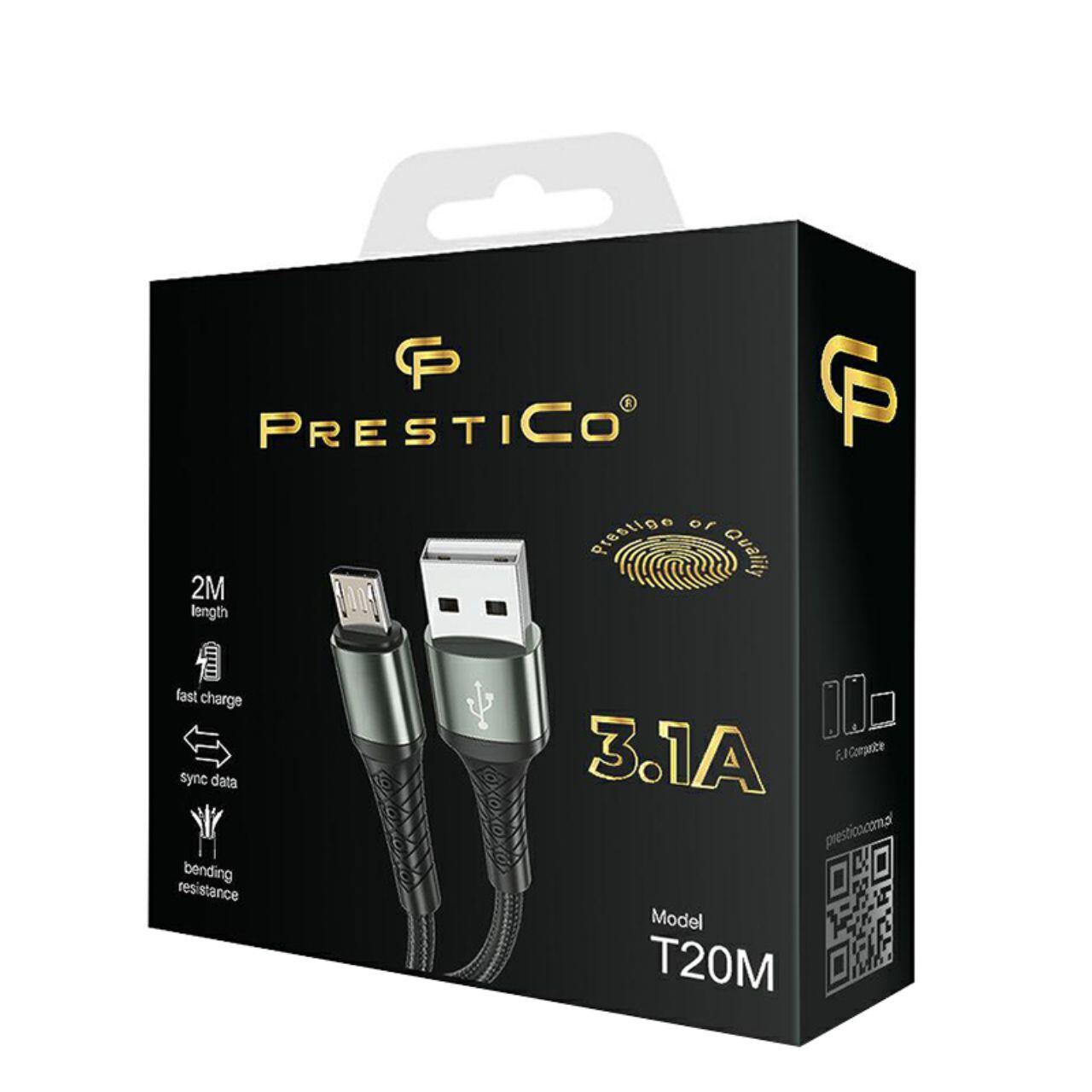 Prestico Cablu T10 USB la MicroUSB Fast Charger, 3.1A Negru