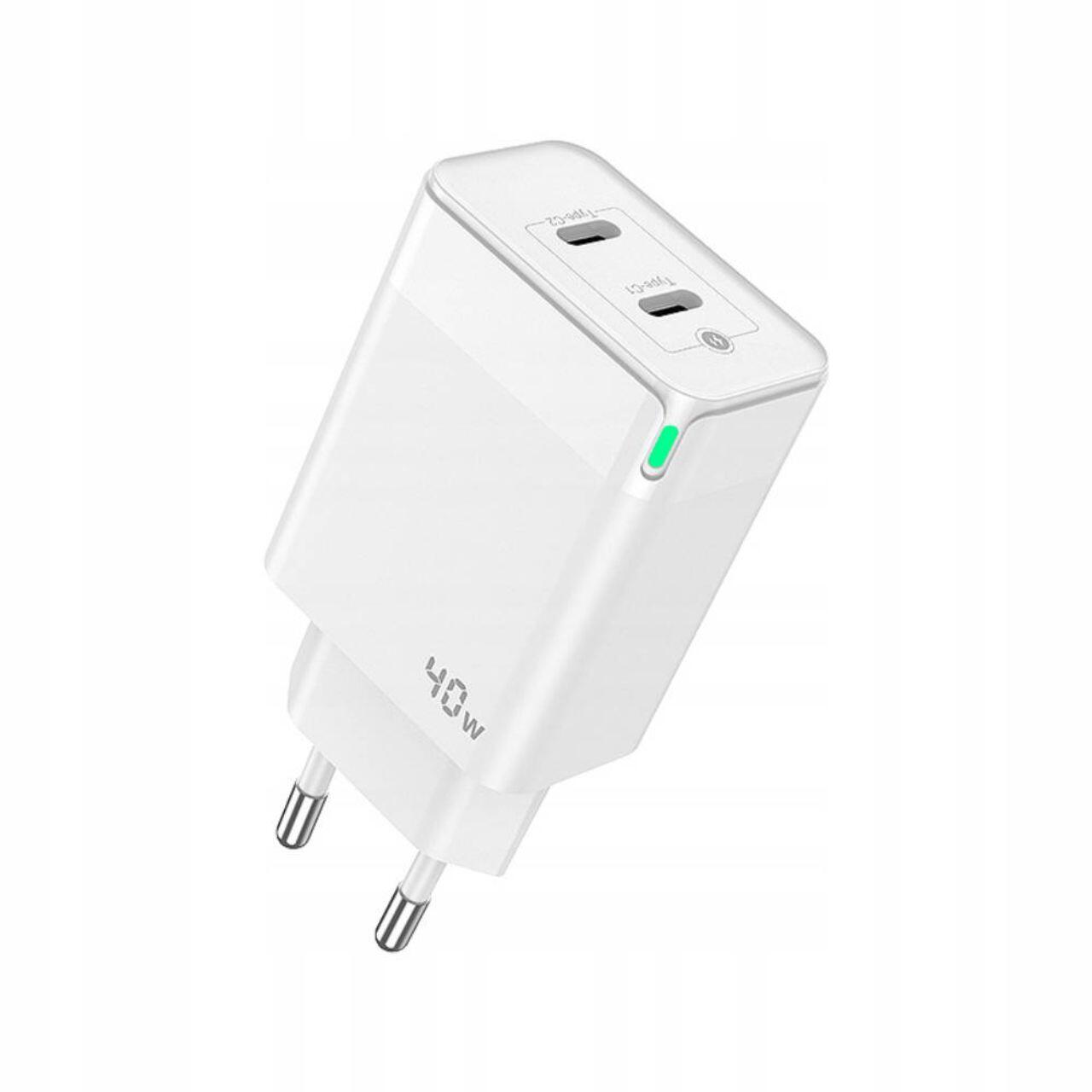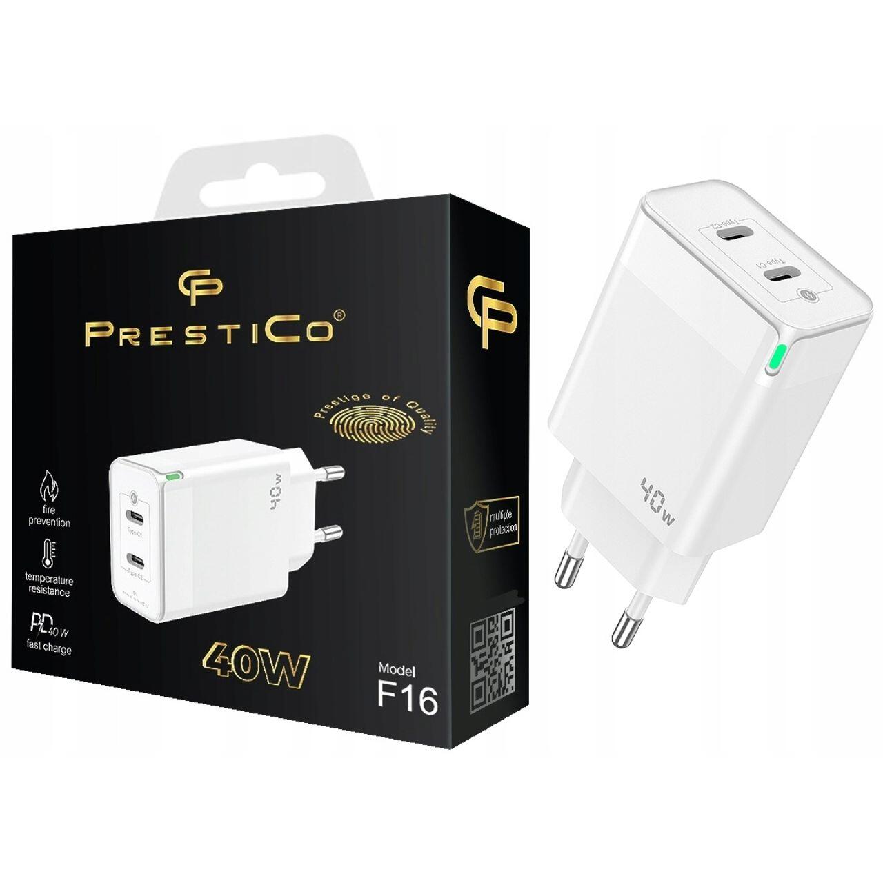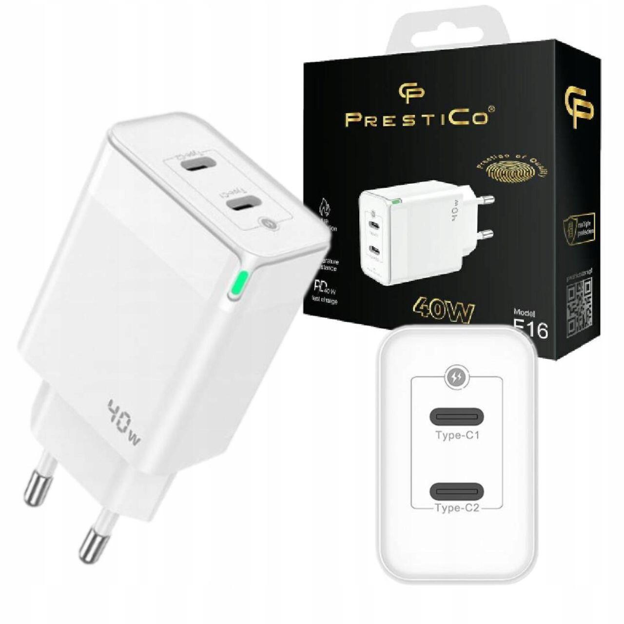Prestico Incarcator Retea F16 2 x USB-C, PD, Fast Charge, 40W Alb
