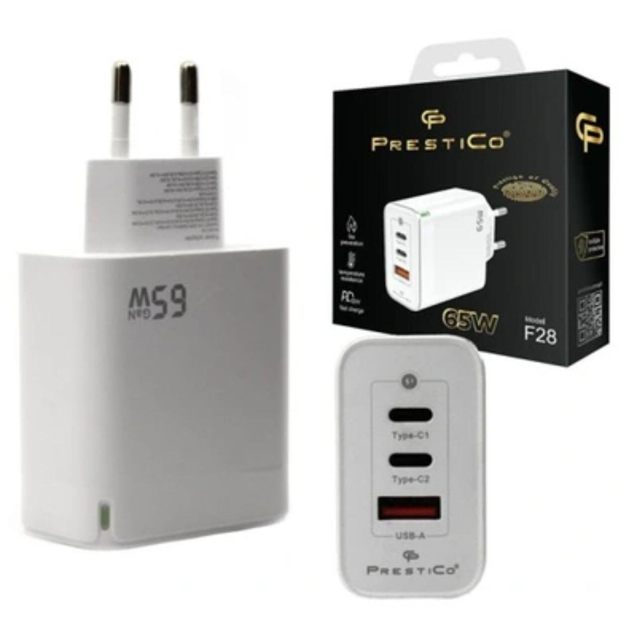 Prestico Incarcator Retea F28 2 x USB-C PD, 1 x USB QC, Fast Charge, 65W Alb