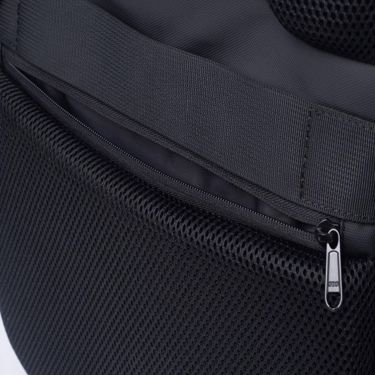 Structura rucsacului include un buzunar frontal prevazut cu suport pentru AirTag, un detaliu util pentru cei care vor sa isi urmareasca bagajul in timp real, precum si un buzunar frontal ascuns, gandit pentru obiecte importante sau documente pe care le vrei la indemana dar in siguranta. In partea superioara, rucsacul este echipat cu o catarama cu eliberare rapida, care faciliteaza manipularea acestuia in situatiile in care ai nevoie sa il deschizi sau sa il strangi rapid.