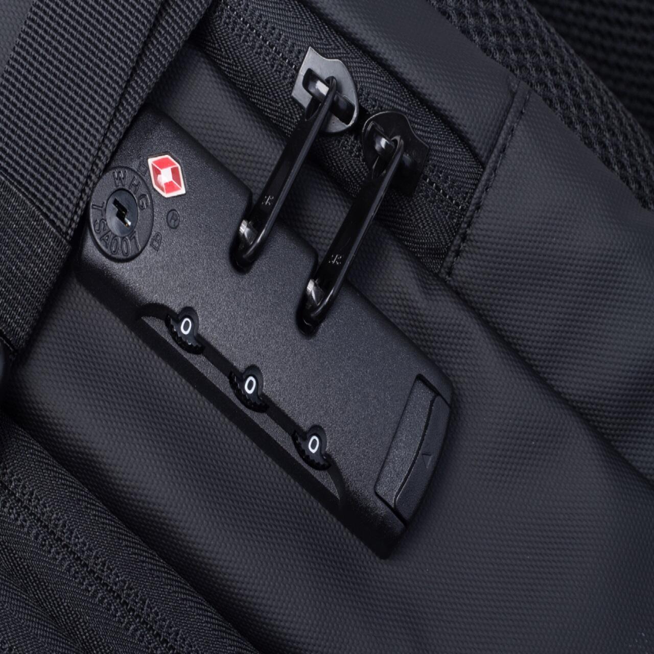 Rucsacul dispune si de o zona de extindere, accesibila printr-un fermoar lateral, care adauga spatiu suplimentar atunci cand ai nevoie, fara a compromite forma sau stabilitatea rucsacului. Pentru siguranta in calatoriile cu avionul, rucsacul este prevazut cu un lacat TSA, compatibil cu standardele internationale de securitate aeroportuara.