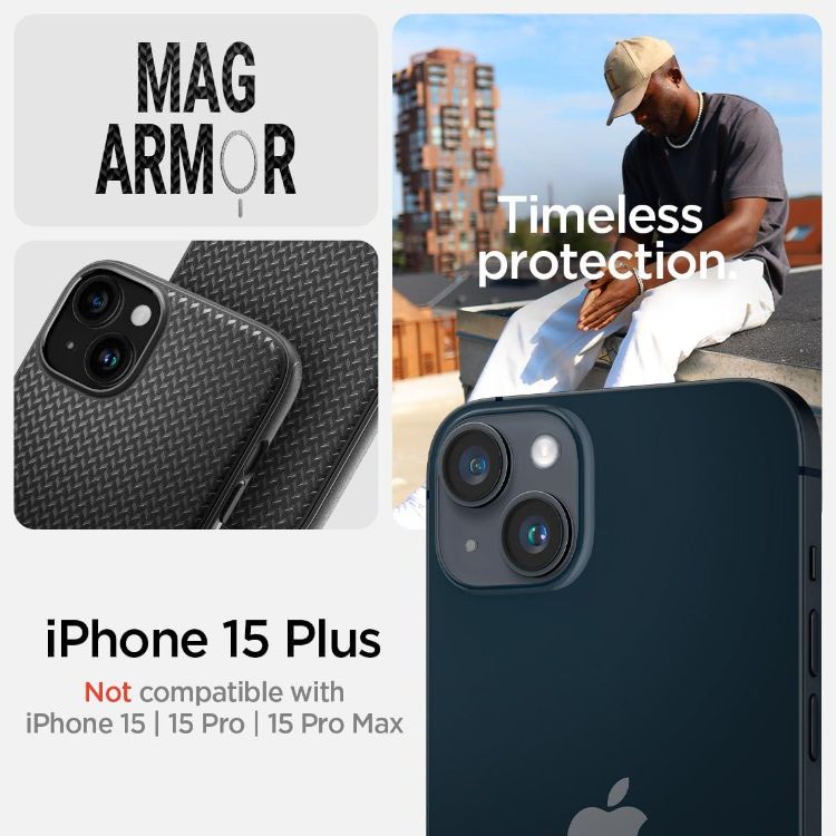 Husa Mag Armor de la Spigen MagSafe pentru iPhone 15 Plus este realizata din fibre de aramida de inalta calitate - cunoscute si sub numele de fibre Kevlar. Acest material face carcasa dura si rigida, fiind totusi usoara si subtire - protejand astfel dispozitivul foarte bine.
