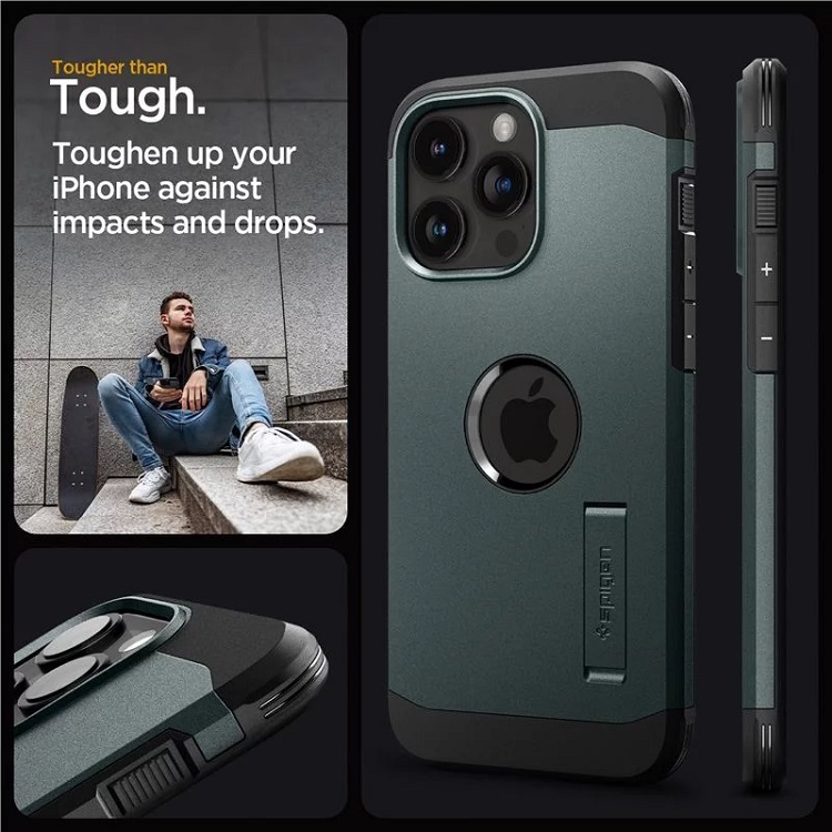 Husa Tough Armor de la Spigen pentru iPhone 15 Pro absoarbe socurile unei eventuale cazaturi cu succes datorita combinatiei de materiale de calitate folosite: invelis dur (Policarbonat) pe exterior, silicon moale pe margini si o extra protectie din spuma la interior. In plus colturile folosesc tehnologia Air Cushion ce diminueaza vibratiile socului. Este certificata military grade MIL-STD 810G-516.6 impotriva cazaturilor.
