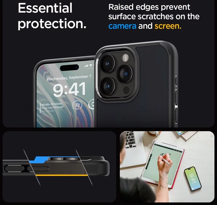 Husa Ultra Hybrid pentru iPhone 15 Pro de la Spigen este o husa care imbina un design minimalist si o protectie la cel mai inalt nivel. Fabricat din material TPU durabil si flexibil, care inconjoara in siguranta intregul dispozitiv, astfel incat sa asigure o prindere perfecta. In plus, completat de un panou puternic din policarbonat care protejeaza impotriva zgarieturilor.