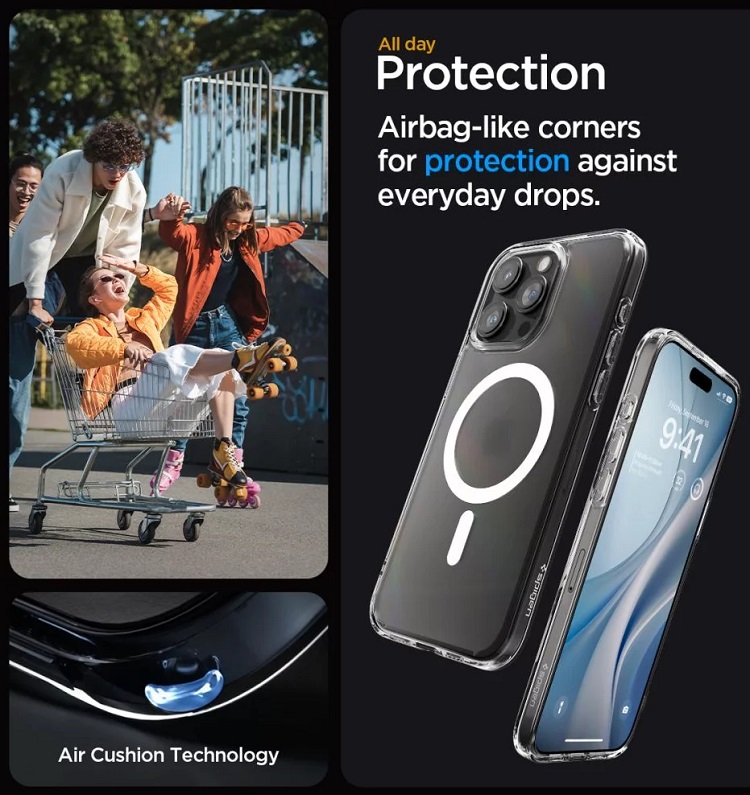 Husa Ultra Hybrid MagSafe pentru iPhone 15 Pro este o husa care combina designul minimalist si protectia la cel mai inalt nivel, fabricata din material TPU durabil, flexibil, care inconjoara in siguranta intregul dispozitiv, astfel incat sa ofere o amortizare excelenta. In plus, completat cu un panou puternic din policarbonat care protejeaza impotriva zgarieturilor si intareste structura.