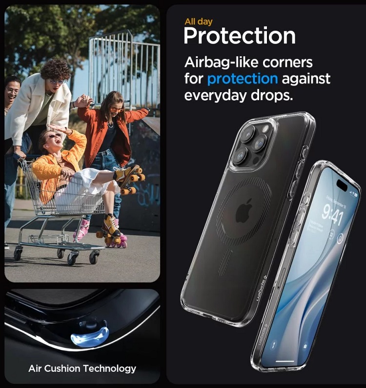 Nu restrictioneaza accesul la porturile externe si protejeaza eficient telefonul in timpul caderilor, este solutia de protectie perfecta, mentinand in acelasi timp greutatea si grosimea minime.Montarea si demontarea de pe telefon se face usor datorita materialului flexibil din care este confectionata pe margini. Husa este compatibila cu incarcarea wireless.