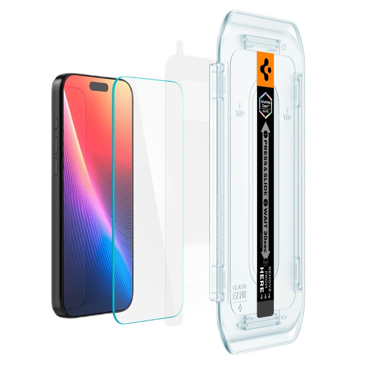Pachet 2 buc Spigen Folie Sticla cu aplicator inclus Glass tR EZ Fit iPhone 17 / iPhone 17 Pro  / 16 Pro Clear