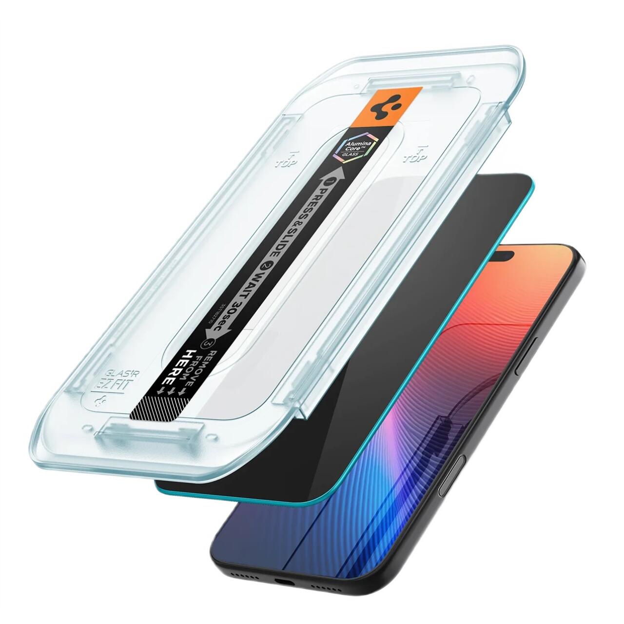 Spigen Pachet 2 buc Folie Sticla Privacy cu aplicator inclus Glass tR EZ Fit iPhone 17 / iPhone 17 Pro / 16 Pro Black
