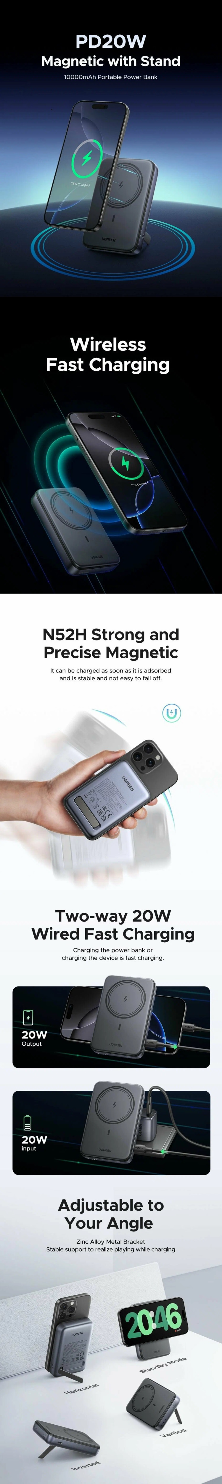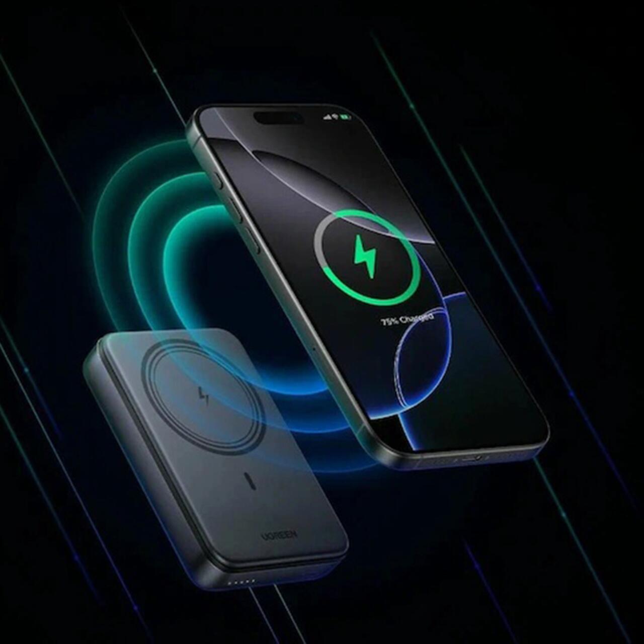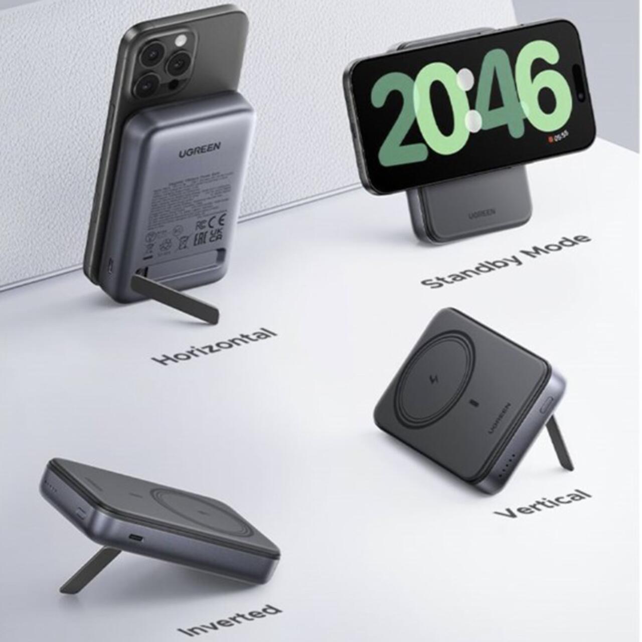 Ugreen Acumulator extern Magnetic Wireless, 10.000mAh, 20W, cu stand, Grey