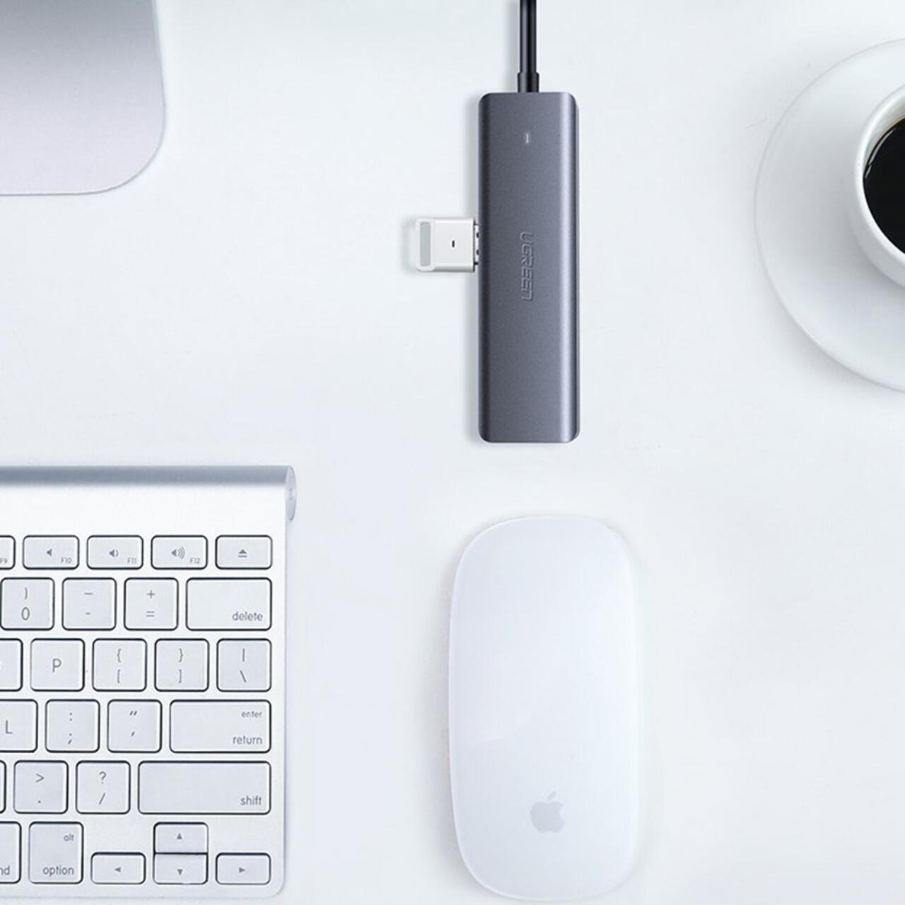 Multihubul Type-C la 4xUSB-A 3.0 de la Ugreen, iti extinde instant portul USB-C cu mai multe conexiuni esentiale. Conecteaza memorii externe, periferice si ecran extern dintr-un singur adaptor si eficientizeaza-ti munca.