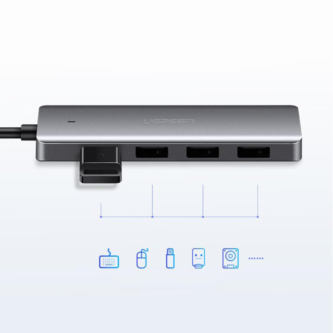 Ugreen Multihub Type-C la 4xUSB-A 3.0, Micro-USB Power Port, 5Gbps, Gri