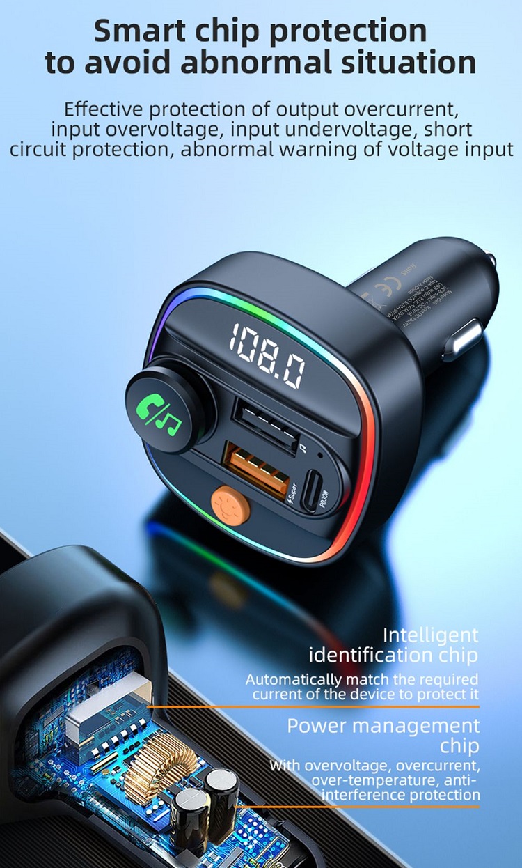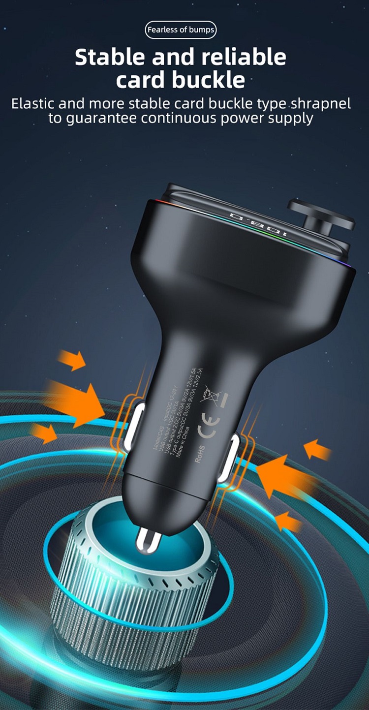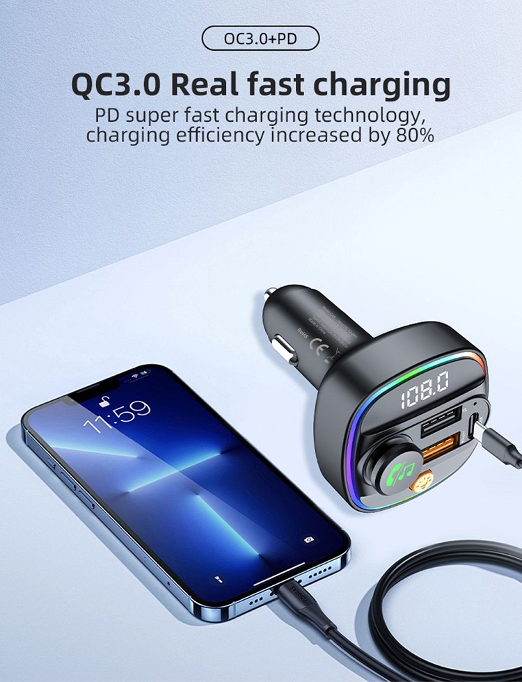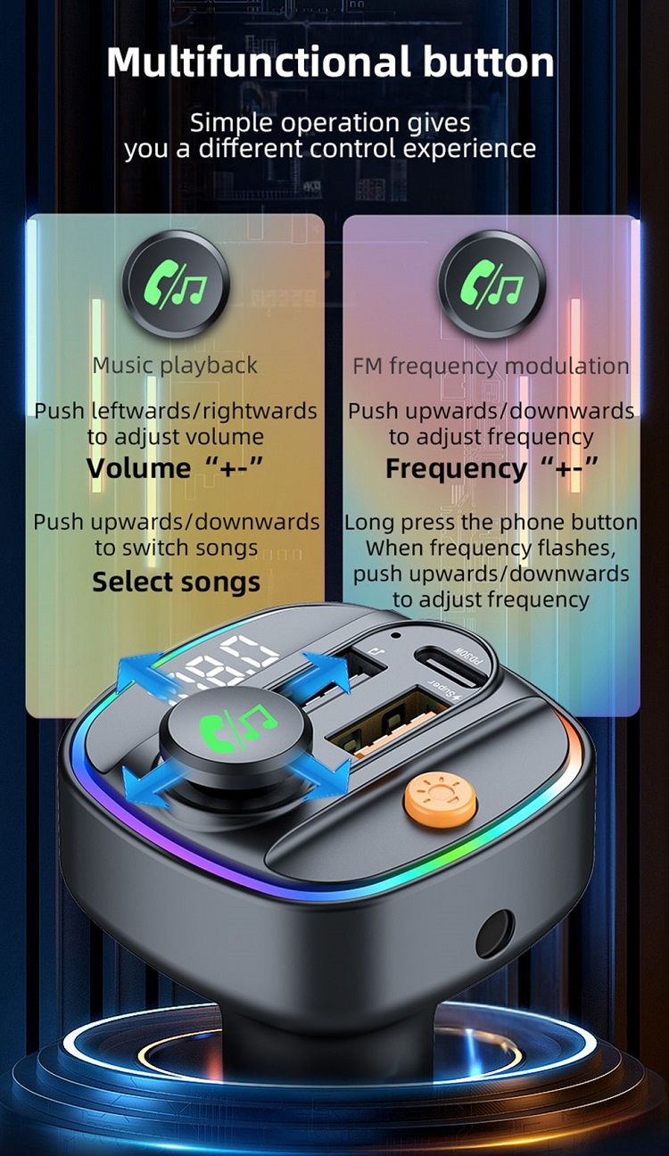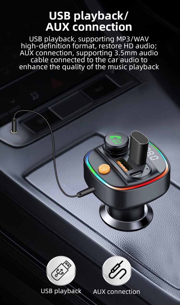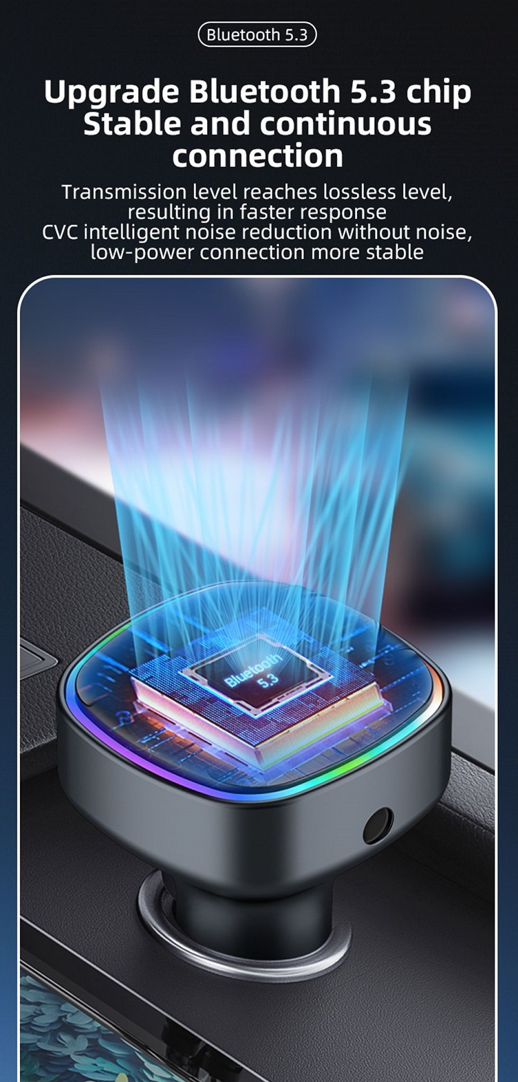 Caracteristica transmitator FM va permite sa transmiteti audio de pe telefon la radioul FM al masinii. Bucurati-va de o calitate a sunetului clara, cu interferente minime, facandu-va drive-urile mai placute si mai distractive. Conectivitatea Bluetooth asigura o conexiune stabila si fiabila, astfel incat sa puteti transmite muzica in flux si sa preluati apeluri fara intreruperi.