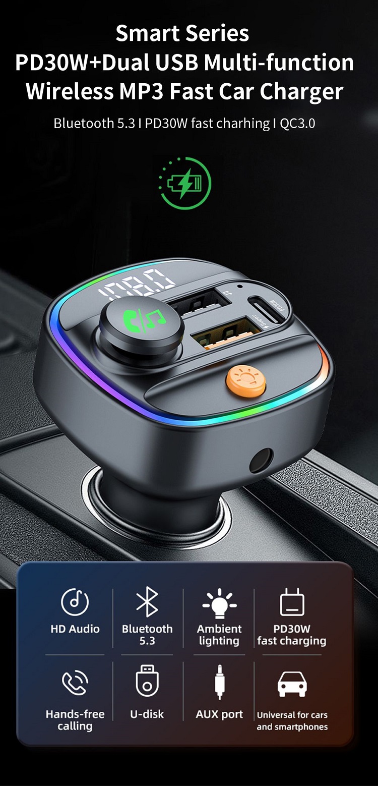 Modulatorul FM Smart Series Bluetooth PD 30W + Dual USB, MP3, Fast Charger de la Devia, acest dispozitiv inovator va permite sa va conectati telefonul smartphone la sistemul audio al masinii fara fir, oferind o modalitate simpla si convenabila de a va bucura de muzica, podcasturile si apelurile preferate din mers.