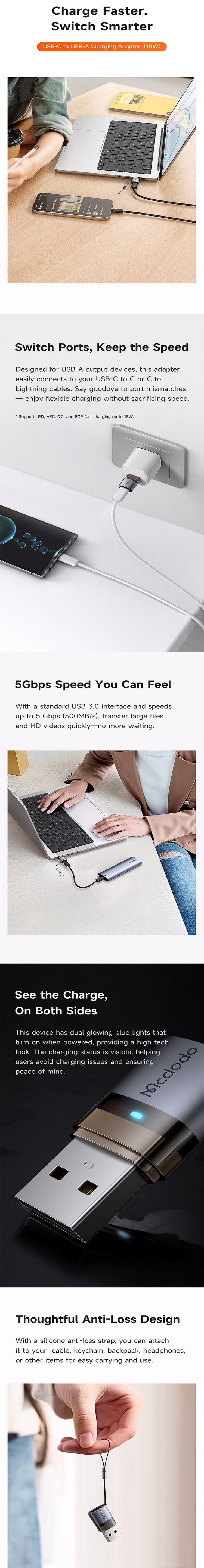 Mcdodo Adaptor OTG Type-C la USB 3.0, cu designul sau deosebit, transforma fiecare conexiune intr-o experienta rapida si rafinata.