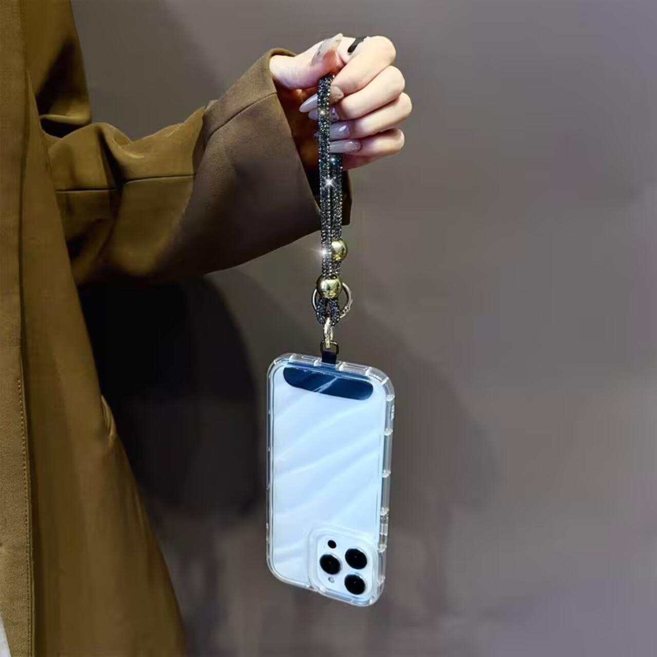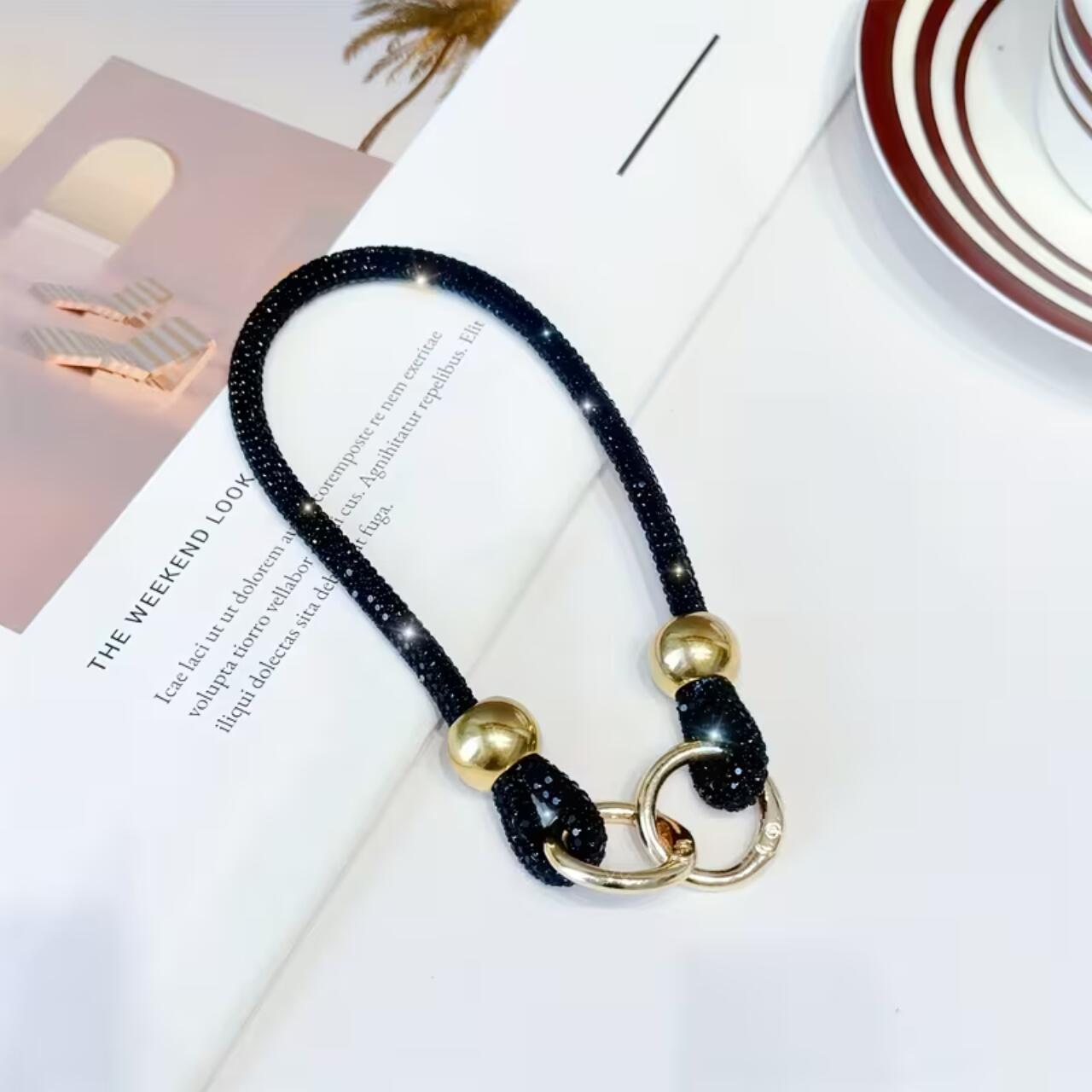 Lemontti Snur de mana pentru telefon Crystal Glow, 30cm, Negru