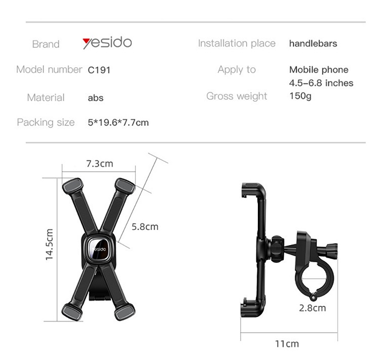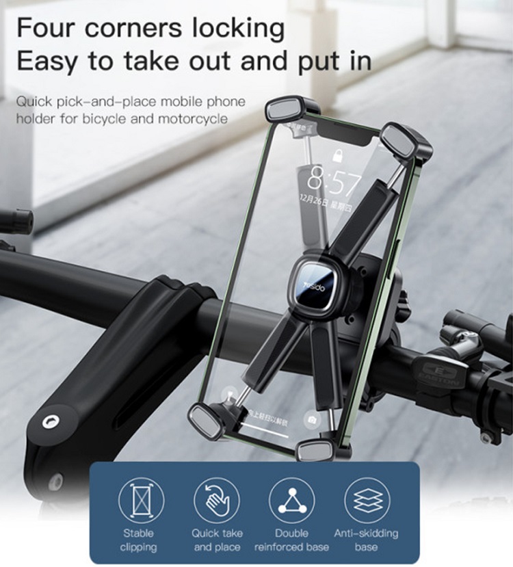 Suportul de telefon Yesido pentru bicicleta, motocicleta sau scuter, este solutia ideala pentru utilizarea telefonului in timpul deplasarilor. Conceput pentru stabilitate si siguranta, acesta iti permite sa ai telefonul mereu la indemana, fie ca folosesti GPS-ul sau raspunzi la apeluri.