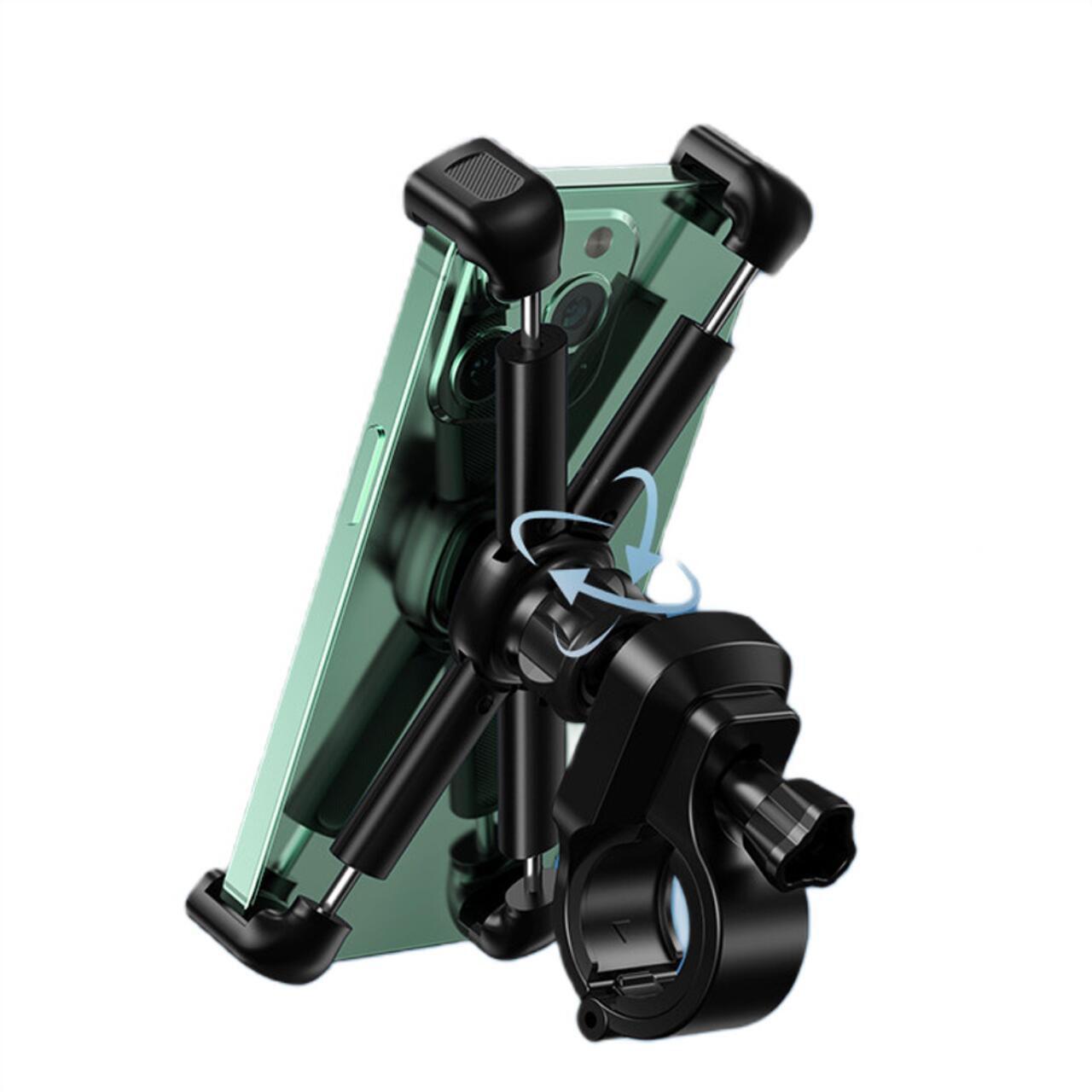 Sistemul de prindere in forma de X, cu patru cleme, fixeaza ferm telefonul si previne alunecarea chiar si pe drumuri denivelate, oferind o utilizare sigura in orice conditii.
