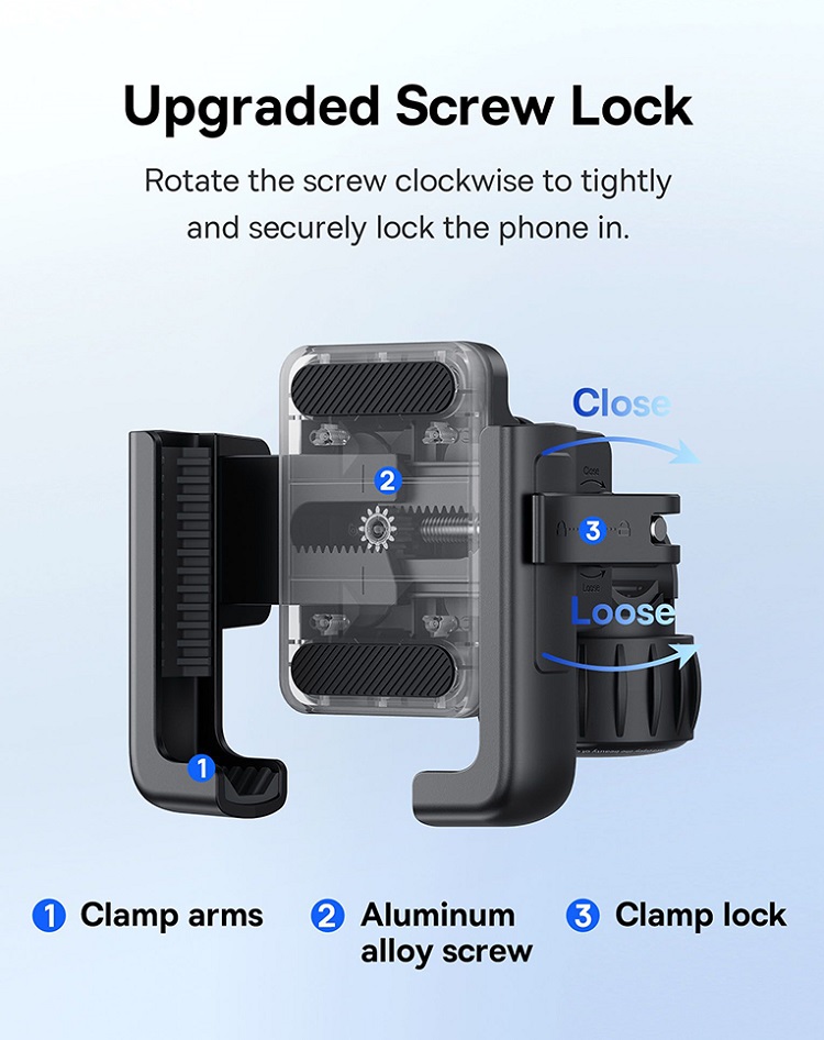 Cu rotire de 360°, poti pozitiona telefonul in modul portret sau landscape, pentru vizibilitate optima si confort personalizat. Suportul este echipat cu materiale durabile – ABS, policarbonat, silicon si aluminiu – care ofera protectie impotriva zgarieturilor si stabilitate excelenta, ideal atat pentru plimbari, cat si pentru capturi foto sau video netede.