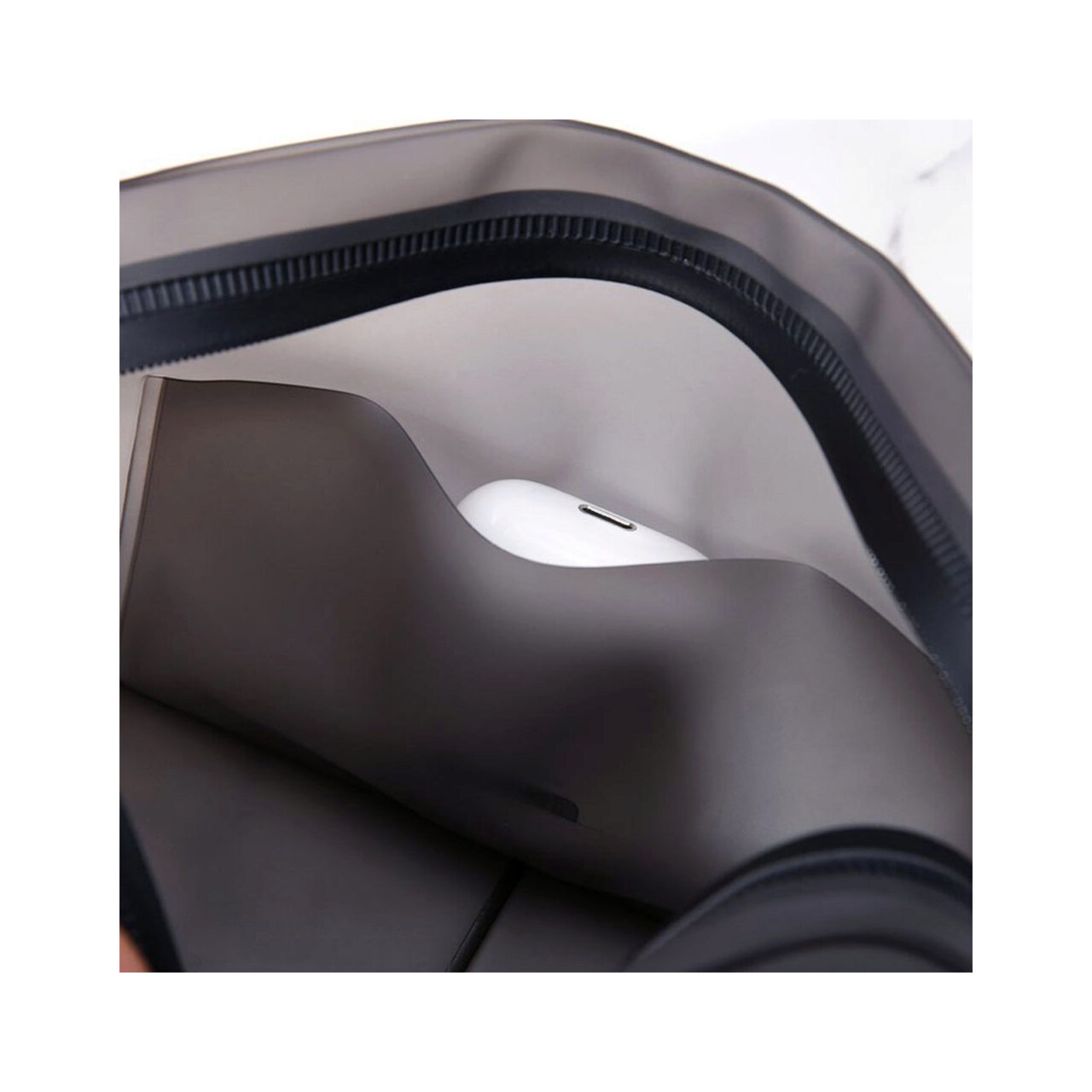 Design waterproof, confectionata din materiale impermeabile cu inchidere etansa.Destinata electronicelor micute, precum: smartphone, smartwatch, airpods, casti etc.Are margini intarite, pentru a-si mentine forma dreptunghiulara chiar si atunci cand este goala.
