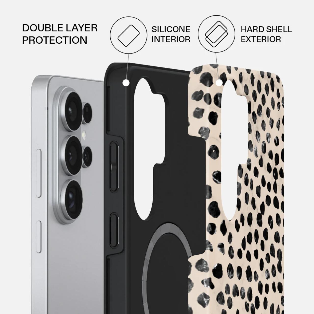 Husa Dual Layer Magnetic Almond Latte Samsung Galaxy S26 Ultra de la Burga, are un design unic si colorat, iar interiorul din silicon va protejeaza dispozitivul in timpul caderilor, in timp ce ramele inaltate de 2 mm ofera protectie suplimentara pentru ecran si camera.