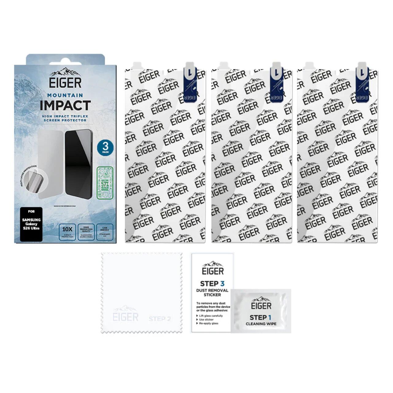 Eiger Pachet 3 buc Folie Mountain Impact GRS Samsung Galaxy S26 Ultra Clear