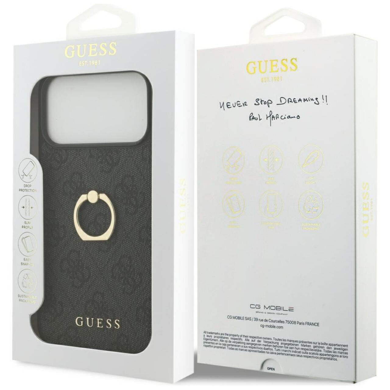 Guess Husa 4G Ring Stand iPhone 17 Pro Max Negru
